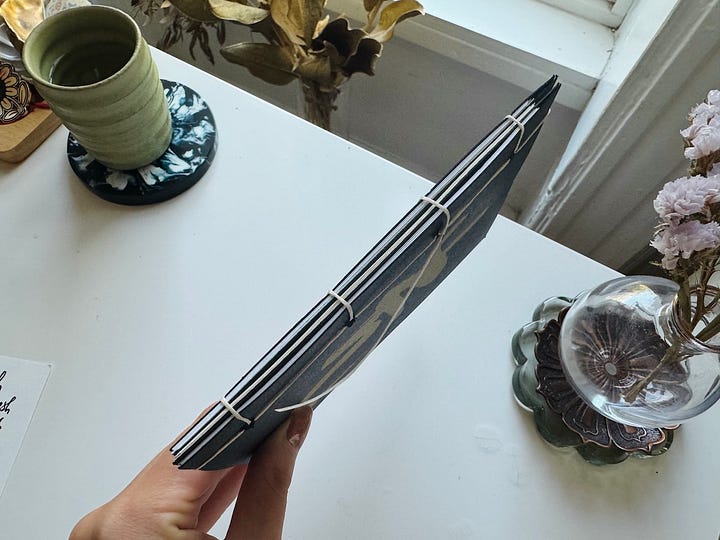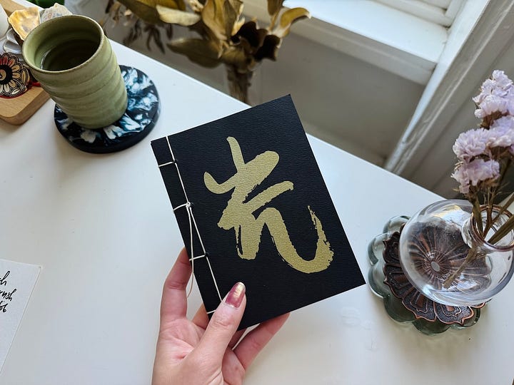 Hello 1050 pieces of paper Printed! Cut! Assembled! Bound! A mix of Chinese calligraphy, photos from gentle scorching Oaxaca, and the words that gently vomited out of the margins of the past year. I wish I had more energy for art but we will choose to be satisfied. I’m keeping the contents offline; the preface goes: